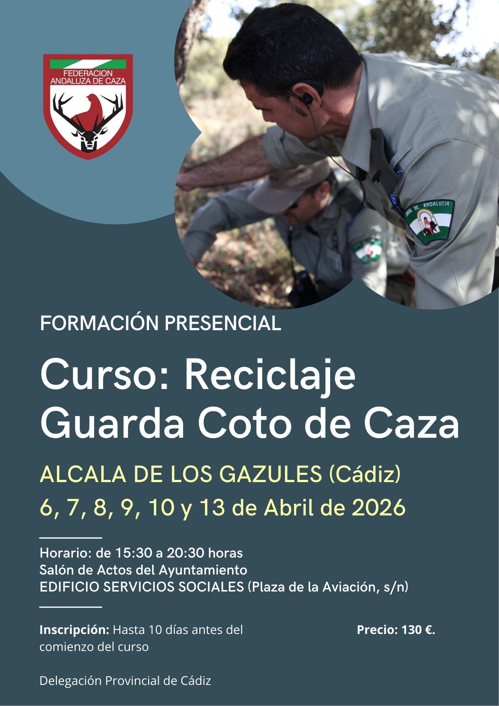 La Federación Andaluza de Caza ha organizado un curso presencial de actualización para guardas de coto de caza, dirigido a aquellos profesionales que deseen realizar un reciclaje y actualización en sus conocimientos. Este curso se llevará a cabo en Alcalá de los Gazules, Cádiz, específicamente en el Edificio de Servicios Sociales ubicado en la Plaza de la Aviación, sin número.