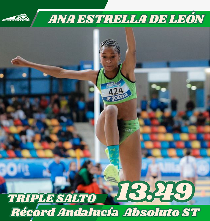 Ana Estrella de León, originaria de San Juan Aznalfarache, ha logrado establecer un nuevo récord absoluto de Andalucía en la categoría de triple salto short track. La joven deportista consiguió un registro impresionante de 13.49 metros durante su participación en el Campeonato de España sub20 celebrado este fin de semana en Sabadell.