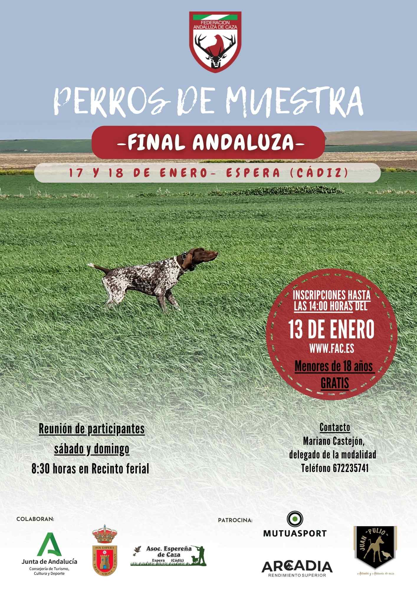 Cualquier duda o pregunta respecto a la prueba o al proceso de inscripción puede ser resuelta contactando al delegado andaluz de Perros de Muestra de la FAC, Mariano Castejón, al teléfono 672 235 741.