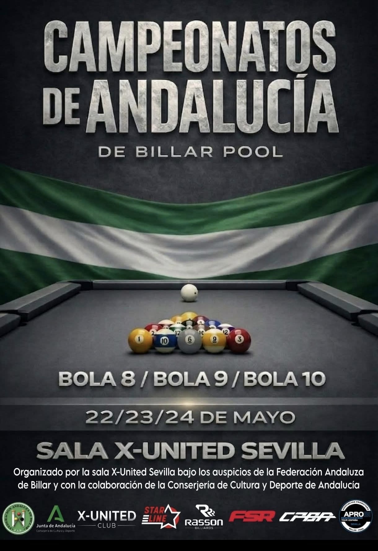 La Federación Andaluza de Billar (FAB) ha anunciado la celebración de los Campeonatos de Andalucía Absolutos de Pool en las modalidades de Bola 8, Bola 9 y Bola 10, correspondientes a la temporada 2025/2026. Este evento se llevará a cabo en la Sala X-United Sevilla, conocida por su compromiso con el deporte, contando con el respaldo de la FAB y el apoyo de la Consejería de Cultura y Deporte de la Junta de Andalucía.