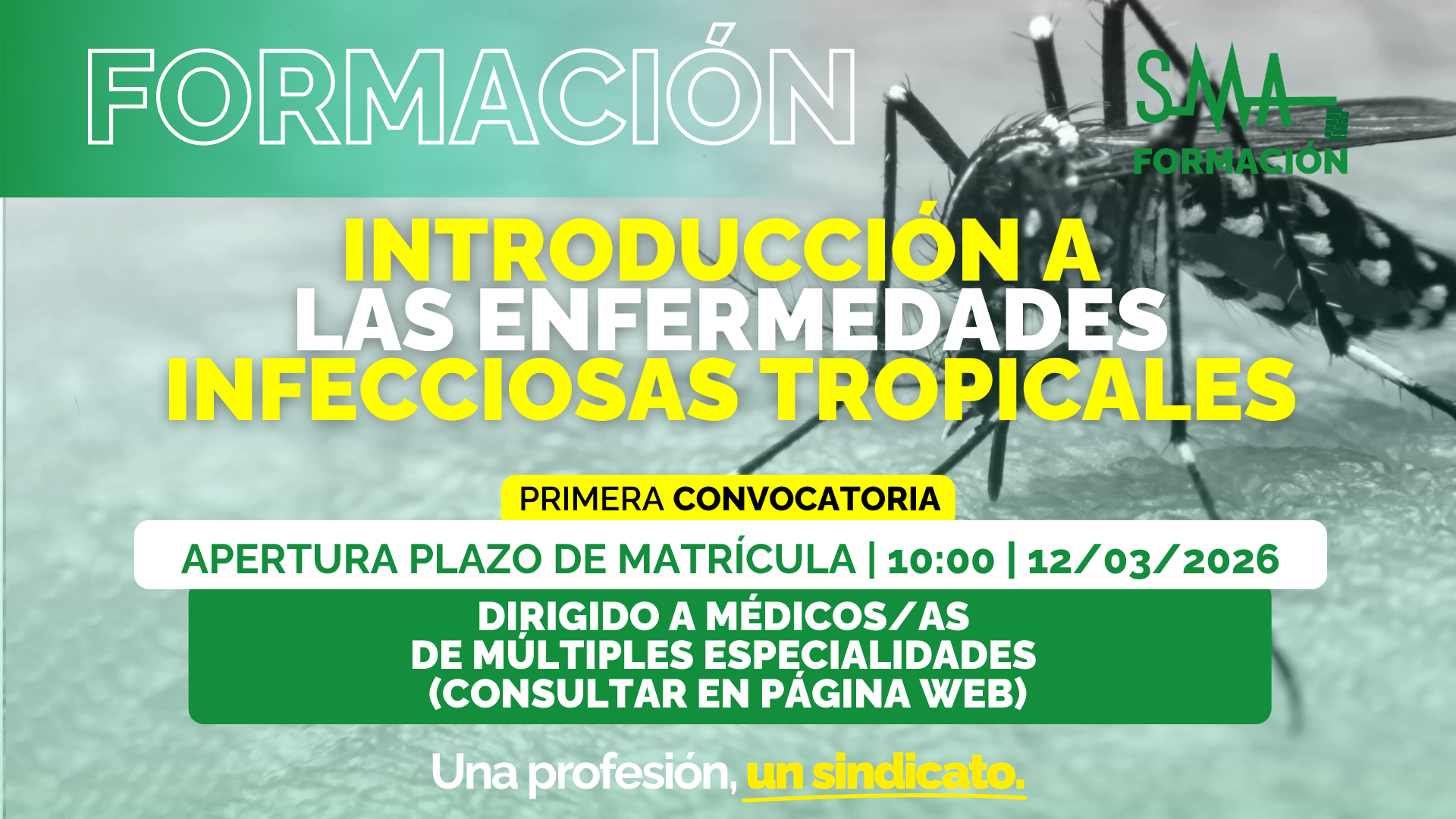 El Sindicato Médico Andaluz ha lanzado una importante iniciativa formativa centrada en la «Introducción a las Enfermedades Infecciosas Tropicales», dirigida a médicos de diversas especialidades, como Cardiología, Geriatría, Inmunología, Medicina Familiar, entre otras. Este curso, que está programado para comenzar el 12 de marzo de 2026 y finalizar el 28 de mayo de 2026, ofrece una carga lectiva de 6 CFC y cuenta con un total de 250 plazas disponibles.